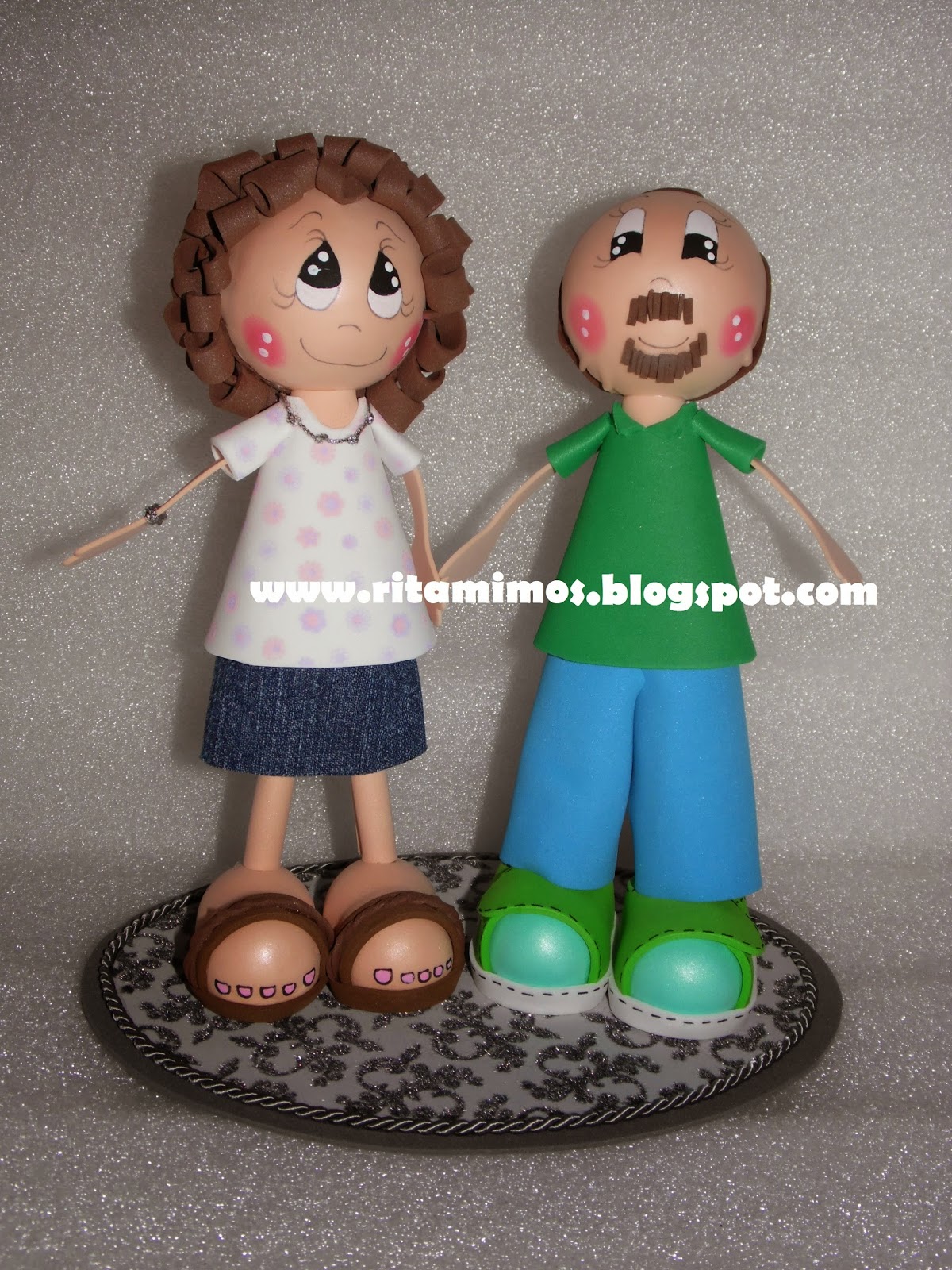Boa noite! Os bonecos em EVA, continuam a ser feitos, apesar de não os ter publicado, mas tenho tantos ainda para vos mostrar... Estes foram personalizados por foto, e foram decorar o bolo das bodas de prata deste simpático casal.
