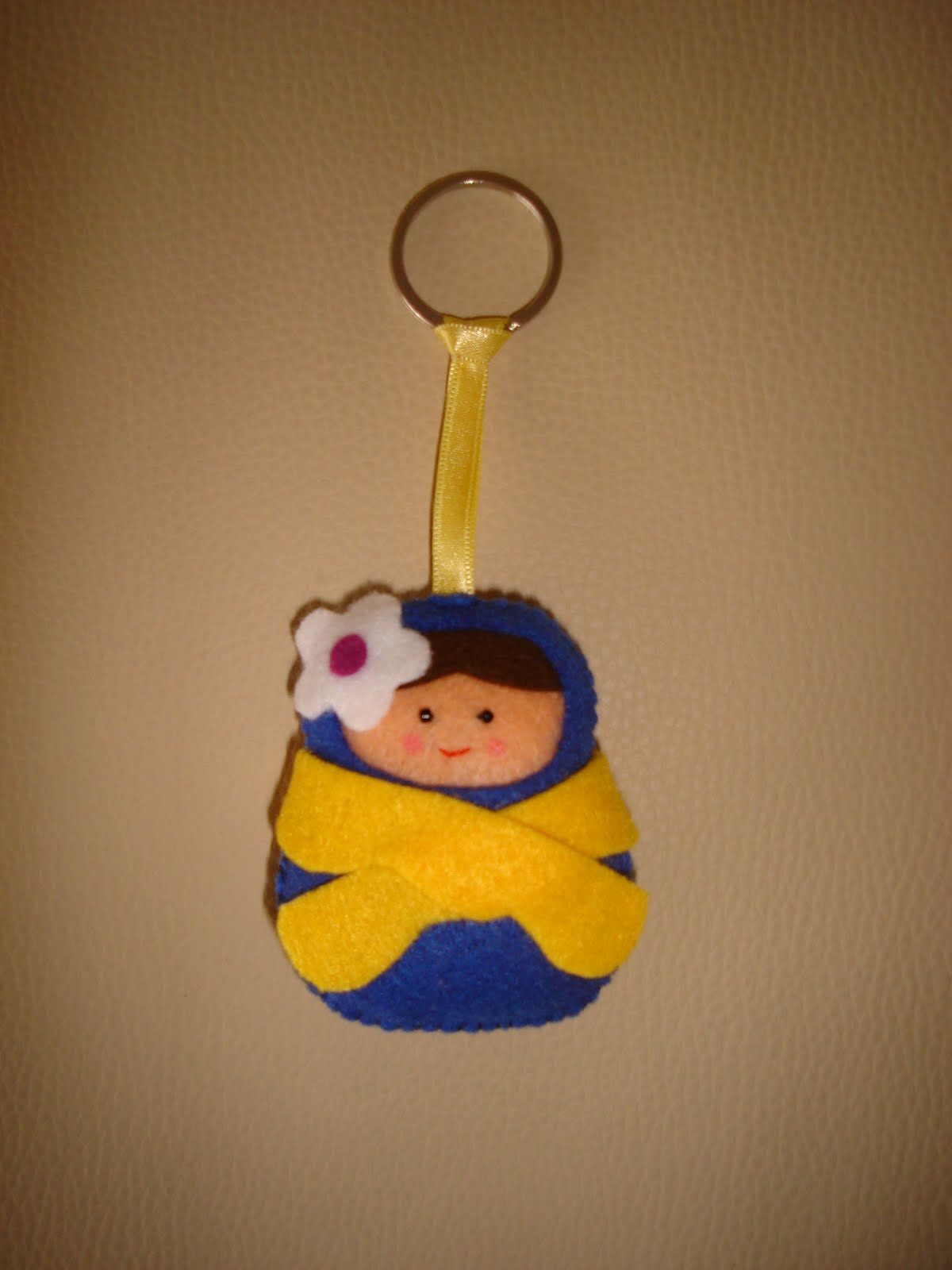 Apresento o novo porta-chaves com um matrioska. Este, foi pedido por encomenda para condizer com uma bolsa matrioska como poderão ver, em azulão e rosa fúxia.