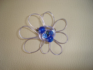 Fica aqui mais uma encomenda, para a T, de uma pregadeira em arame com missangas em preto e branco.